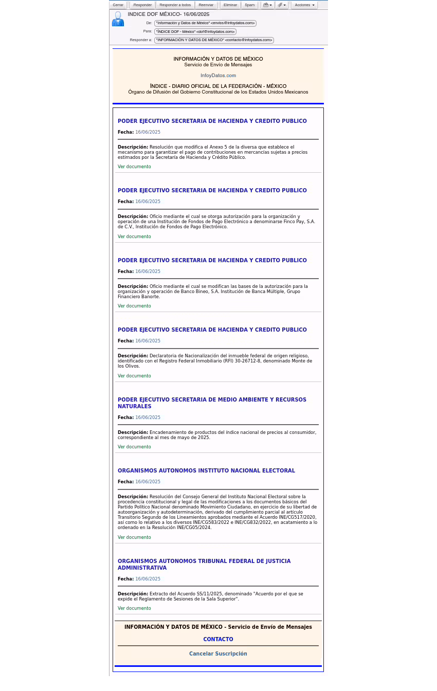 La información que nosotros envíamos, no la generamos nosotros, solamente la recopilamos de las fuentes oficiales y les incluimos los enlaces directos para que pueden revisarla directamente de la fuente original.