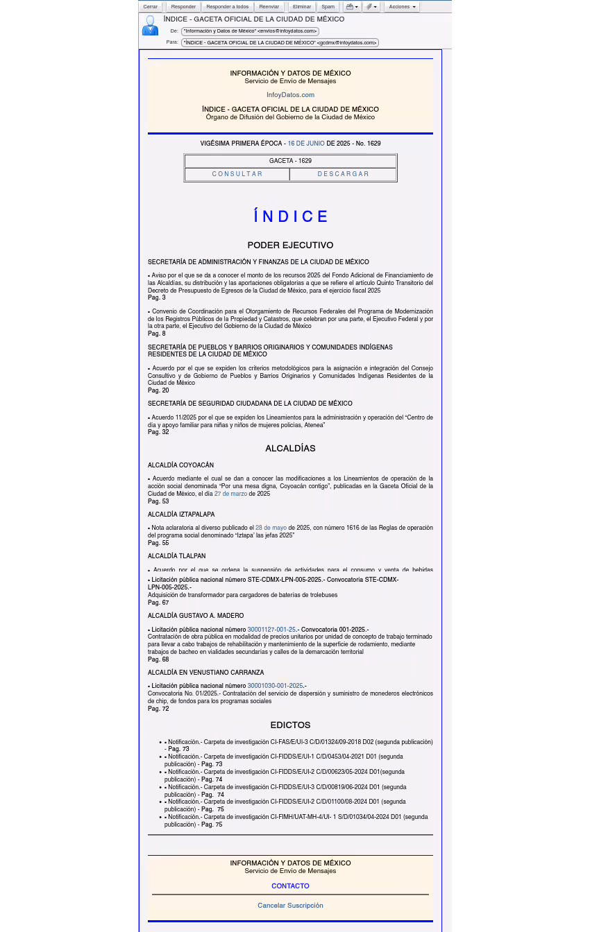 Te envíamos el índice o resumen de la gaceta Oficial de la CDMX.